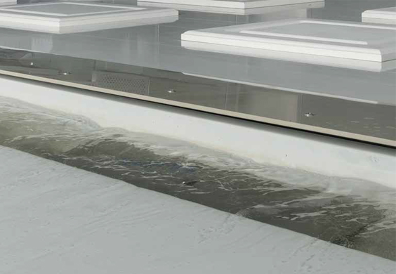 通過一個(gè)大容量水槽中的水簾吸收空噴漆霧,實(shí)現(xiàn)較好的噴漆質(zhì)量和漆膜的均勻度。