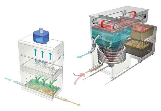 從增壓室抽吸的空氣,可將空噴漆霧帶入水簾式過濾系統(tǒng),接著送入“Scrubber”噴洗裝置 - 截留固體殘留物 - 再送入排風(fēng)機(jī) 。