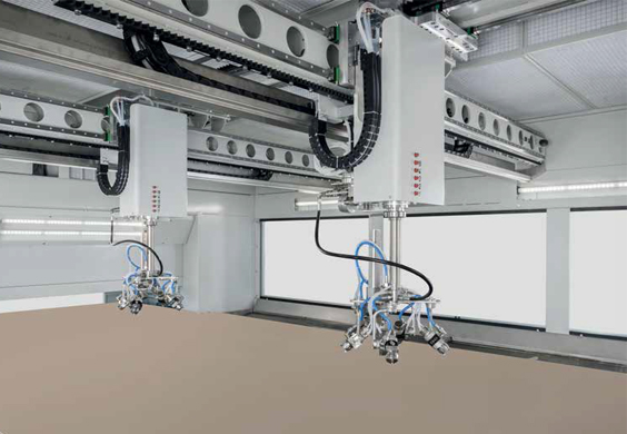 iBOTIC噴涂機(jī)是較好產(chǎn)量、多樣性的噴涂機(jī)器人,可對(duì)平面和邊部進(jìn)行準(zhǔn)確涂裝。Ibotic區(qū)別于其他噴涂機(jī)的之處在于,它可以同時(shí)加工靜止或移動(dòng)狀態(tài)下,不同形狀和厚度的工件。可選用單機(jī)械臂和雙機(jī)械臂噴涂模式。應(yīng)用領(lǐng)域涉及木材、玻璃、塑料、金屬和膠。