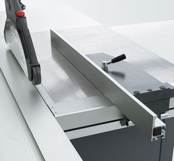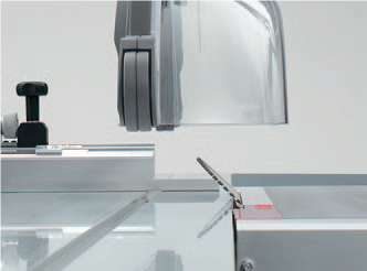 ±46°數(shù)控調(diào)節(jié),兩側(cè)調(diào)節(jié)很快完成,適合多角度及合復(fù)合切割。