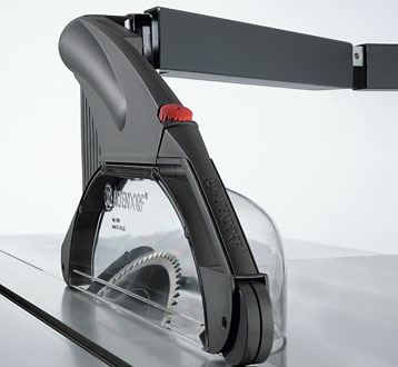 - 適用鋸片直徑可達400 mm, 擋塵罩安裝在吸塵托架上。