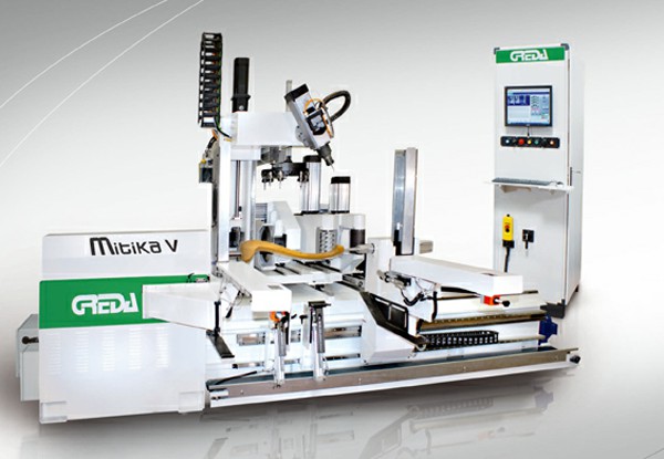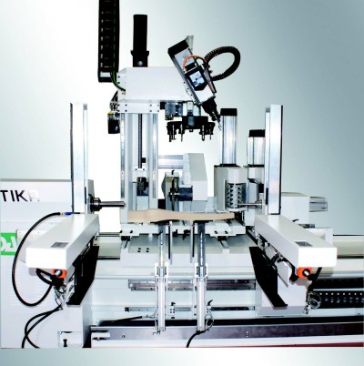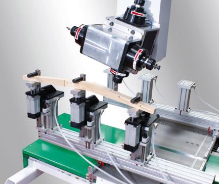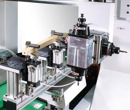 MITIKA V是一款具有鉆、銑、砂等多種功能的數(shù)控加工中心,用來對木質(zhì)構(gòu)件進行鏤銑和車削加工。在屏蔽時間內(nèi)完成換刀而且切割裝置和砂光裝置聯(lián)合加工,可以在較短的工作時間內(nèi)對一個工件進行車削、銑削、成型、砂光和雕刻等操作加工。