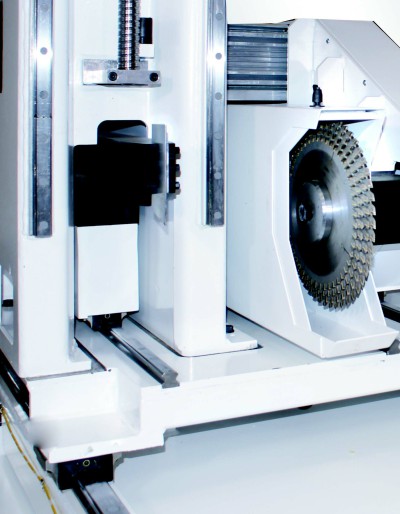 與主鋸配合使用,在切削貼面板時可以不易發(fā)生工件的下表面出現(xiàn)崩邊現(xiàn)象,或在切削一些不常規(guī)材料時,實現(xiàn)一個平直的下表面。槽鋸高度方向及側(cè)向電動調(diào)節(jié)。槽鋸功率0.75千瓦,轉(zhuǎn)速8200轉(zhuǎn)/分。