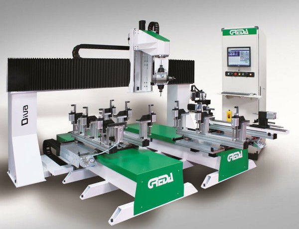 DIVA R2+R1CU是一款5軸數(shù)控加工中心,用來在工件的5個側(cè)面進行從簡單到復(fù)雜的加工操作:鉆孔、開榫眼、開榫頭、成型、指接、鏤銑等,在不到9平方米的空間中進行。